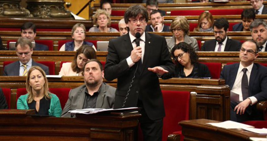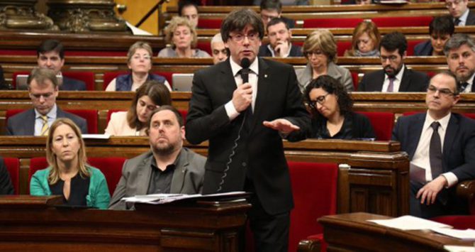 I. Camacho.- Aunque se trata de un golpe, no es de Estado. La rebelión contra Pedro Sánchez constituye una asonada, un motín, una conspiración, pero sucede dentro de un partido en guerra fratricida, con la estructura en llamas. Tiene todas las características de una conjura de familias –a Felipe le faltó comparecer ante Pepa Bueno acariciando un gato en el regazo– y concita la atracción morbosa de las intrigas dinásticas. Sin embargo, el auténtico golpe de Estado, el verdadero pronunciamiento contra las bases constitucionales de la nación, se produjo ayer en otra parte, casi a la misma hora en que Antonio Pradas entregaba en Ferraz las diecisiete firmas de los insurrectos contra el secretario general como diecisiete puñales clavados en su espalda. Fue en Barcelona, en el Parlamento de Cataluña, donde el presidente Puigdemont proclamó solemnemente, con fecha fija, la voluntad de lanzar un nuevo desafío a España.