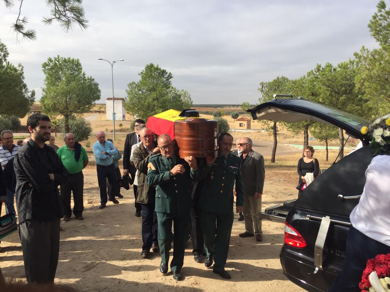 Magnifico articulo salvo que hay que puntualizar que no estuvieron dos miembros del Cuerpo que son los que se ven de uniforme portando el feretro, sino uma docena de compañeros de promocion, el Cmte. Puesto de la demarcacion y cuatro Guardias del Puesto.