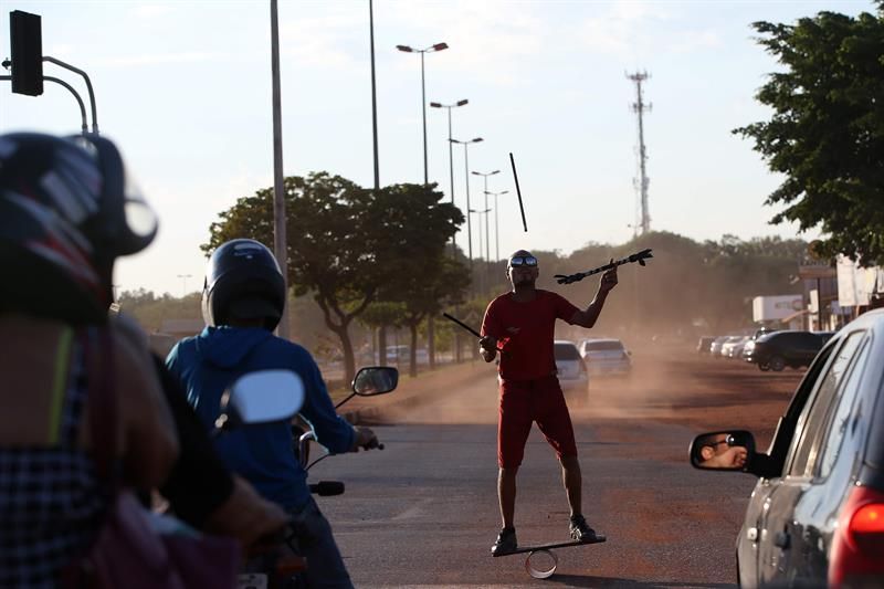 En medio de esos venezolanos que dicen haber huido de la escasez de productos básicos en su país, también ha hecho de la terminal de autobuses su hogar el caraqueño José Antonio Garrido, un malabarista que vive de las monedas que le dan en los semáforos de Boa Vista.