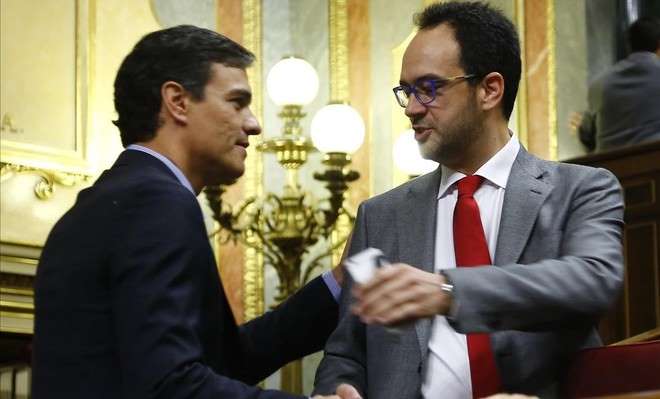 Sánchez, que aún no ha aclarado si cumplirá con la disciplina de voto y se abstendrá, o bien mantendrá el rechazo a Rajoy, ni siquiera ha mirado a su antiguo colaborador.