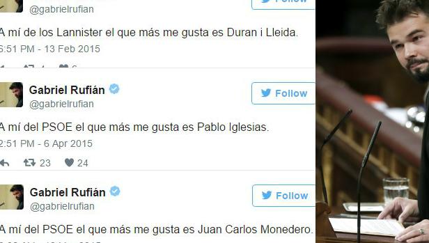 #TuiteaComoRufián: El mensaje simplista del portavoz de ERC, en 263 tuits copiados unos de otros