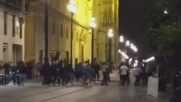 La reyerta entre aficionados se produjo poco después de las 22.30 horas de ayer en la confluencia de la calle Alemanes y la Avenida de la Constitución, en el centro de la ciudad y junto a la Catedral.