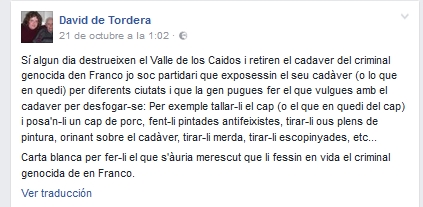 Un excandidato de la CUP propone decapitar el cadáver de Franco y que la gente “pueda mearle encima y lanzarle mierda” – Alerta Digital