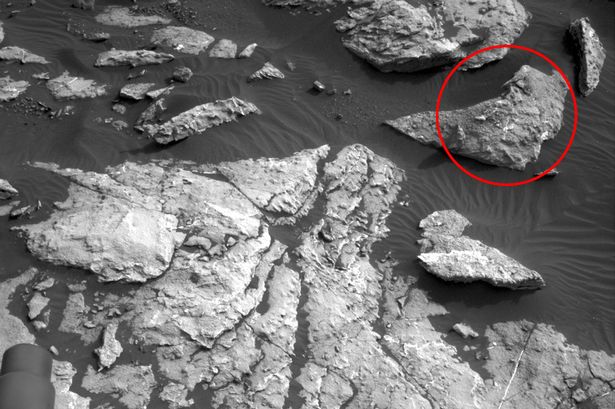 En una fotografía tomada este fin de semana por el ‘rover’ Curiosity, el ufólogo Scott C. Waring ha descubierto lo que se asemeja a una mujer ataviada con un vestido y recostada sobre una roca. “Es el descubrimiento del siglo”, ha afirmado Waring tras haber encontrado “entre cientos de figuras […] una mujer con un vestido, dos brazos, dos piernas y cabeza”.