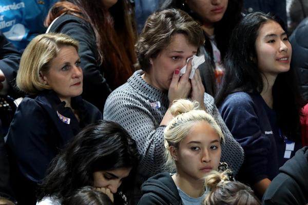 Seguidores demócratas decepcionados después de darse a conocer los resultados de las elecciones presidenciales