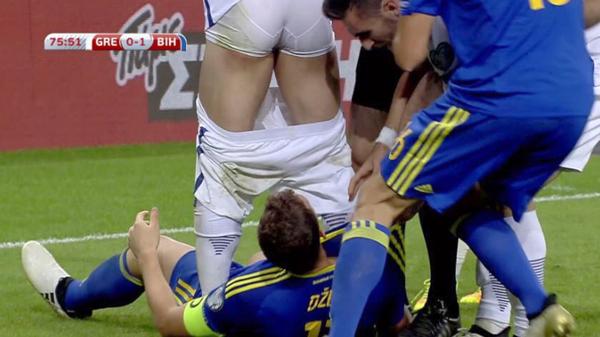 La curiosa acción tuvo lugar en el cuarto partido del grupo H de las eliminatorias europeas para Rusia 2018. Grecia y Bosnia se enfrentaban al buscar acomodarse en el segundo lugar.