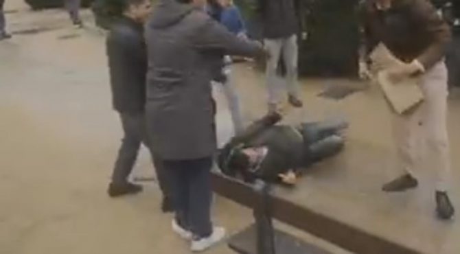 La provocación le salió cara: Jóvenes patriotas dan una paliza a un “perroflauta” rumano por aparecer con un cartel de “Franco Asesino”