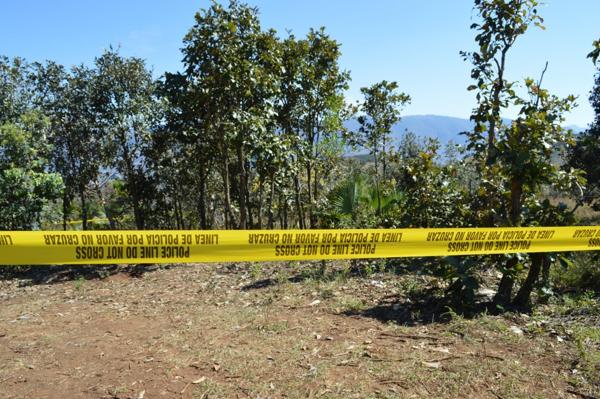 Policías de la Fuerza Estatal acotan el lugar donde peritos forenses trabajan sobre el hallazgo de unas 20 fosas clandestinas, en el municipio de Zitlala, del estado mexicano de Guerrero