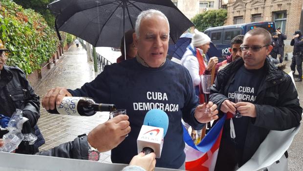 Agentes de la Policía han separado a los dos grupos y han requisado al presidente de Cuba Democracia Ya, Rigoberto Carceller, botellas de champán con las que quería brindar «no por la muerte de Fidel, al que Dios perdone», sino porque hoy «empieza una nueva etapa para los cubanos».