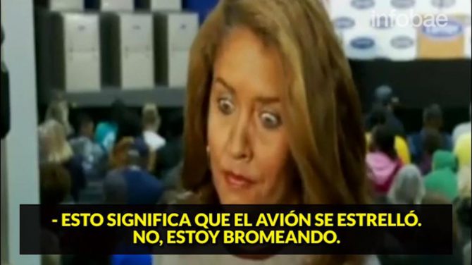 La productora estaba indicando con señales a la reportera sobre la llegada de Trump. “Si hago esto, significa que ha aterrizado”, dice la productora. “Esto significa que su avión se estrelló. No, estoy bromeando”, concluyó.