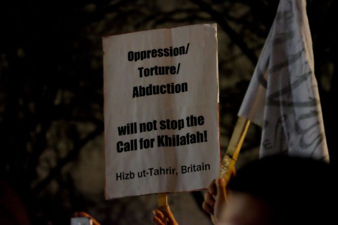 Centenares de musulmanes cortan una de las principales plazas de Londres para exigir un califato en el Reino Unido