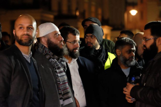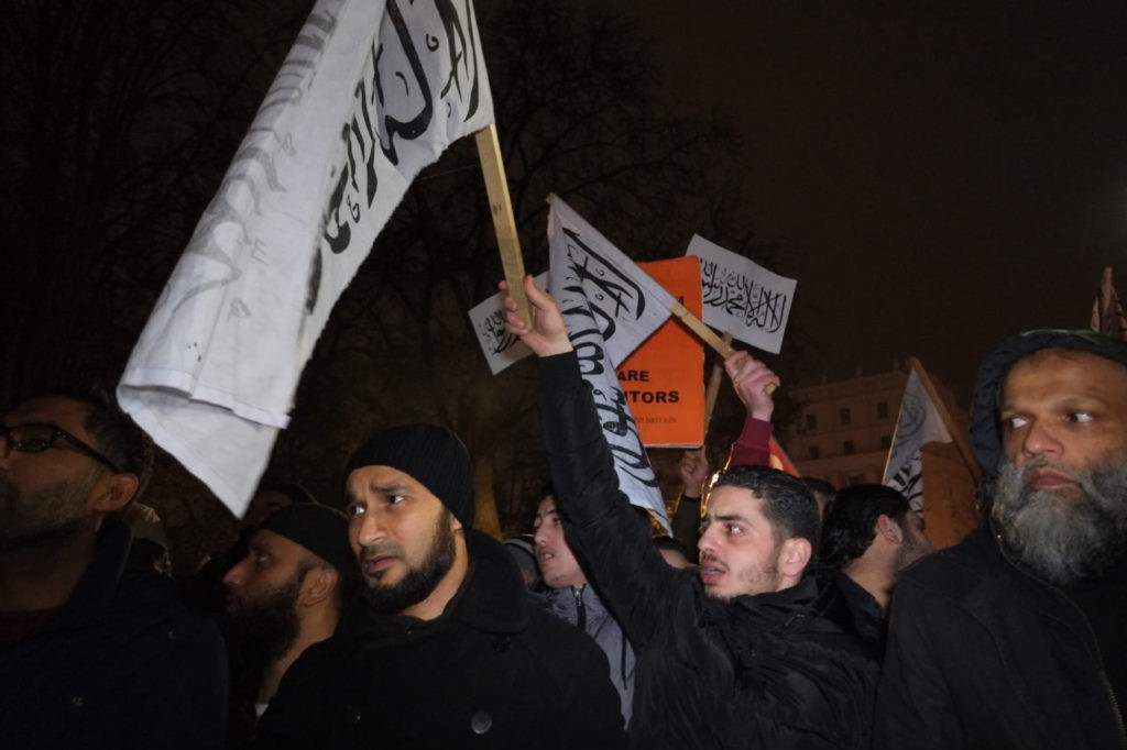 Entre los manifestantes se encontraban numerosas mujeres, todas ellas cubiertas de pies a cabeza. Algunos mostraron banderas del Estado Islámico y pancartas favorables a la islamización de Europa. También se repartieron pancartas con la firma de Hizb ut-Tahrir Gran Bretaña, en favor de la proclamación del califato en suelo inglés. Las autoridades dicen desconocer a los organizadores del acto ni cómo se produjo la multitudinaria convocatoria. No se practicaron detenciones.
