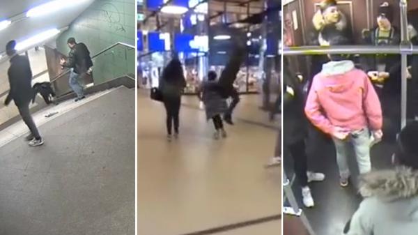 El 9 de diciembre, un video de una cámara de seguridad, también de una estación de metro de Alemania, indignó al mundo. En la grabación se ve cómo un hombre patea a una mujer que baja las escaleras adelante de él y que provocó que la joven se caiga y se golpee violentamente contra el piso.