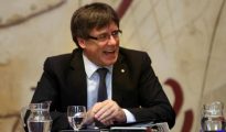 El presidente de la Generalitat, Carles Puigdemont, durante la reunión semanal del Govern, que se reúne por primera vez después de que la semana pasada firmara el decreto de convocatoria del referéndum...