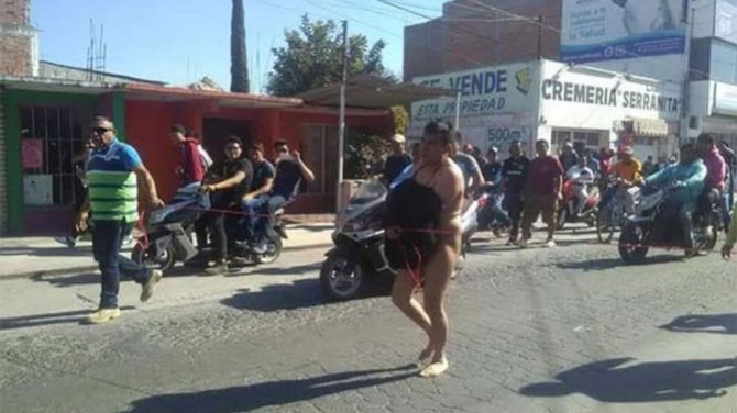 Mexicanos apresan a un saqueador y lo hacen desfilar desnudo por las calles