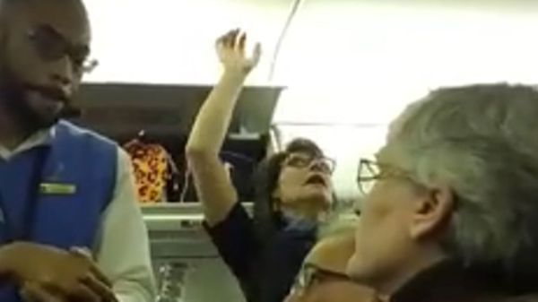 Segundos después, un oficial de abordo se acercó y le dijo que debía dejar el avión. La mujer le dijo que debía permanecer allí porque tenían que visitar a la madre de su esposo, quien durante el incidente se mantuvo en silencio, leyendo. Sólo preguntó si no podrían ser reasignados a otro lugar dentro de ese mismo vuelo.