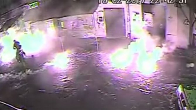 En las imágenes se puede distinguir a los ultras intentando prender fuego el lugar a base de bengalas. Después de un tiempo, llegaron los bomberos y pudieron contener las llamas.