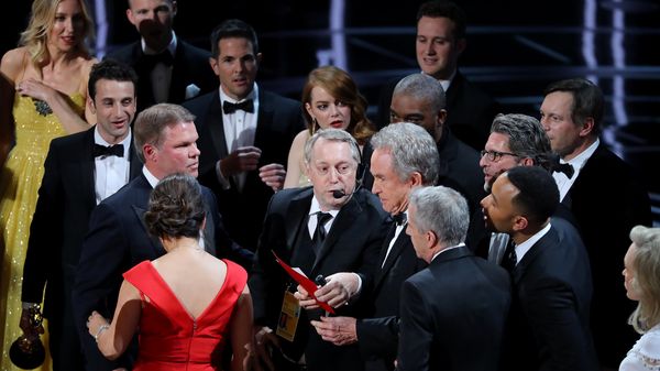 Todo apunta a un error humano de Brian Cullinan y Martha de la Torre, miembros de la consultora y responsables de custodiar los sobres con los nombres de los ganadores hasta entregarlos a los respectivos presentadores, en este caso, a Warren Beatty y Faye Dunaway, quienes fueron los encargados de anunciar el ganador a la mejor película.