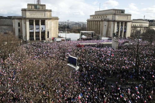 Miles de personas se han dado cita hoy en la plaza del Trocadero de París para apoyar a Francois Fillon.