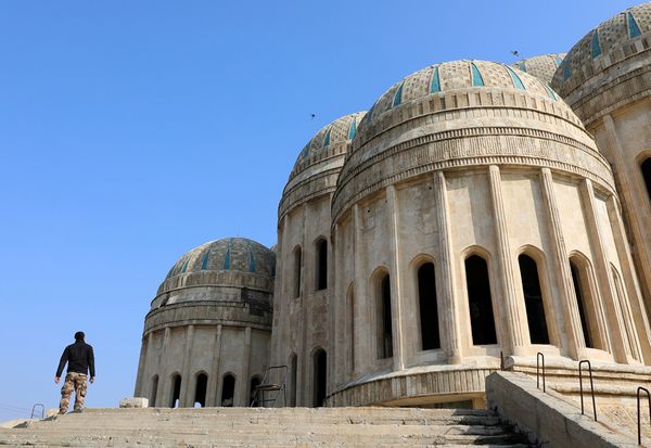 Las elegantes columnas de mármol de una iglesia de Mosul se convirtieron en soporte propagandístico del grupo Estado Islámico, que usó el edificio como sede de la policía religiosa. Ni rastro de crucifijos, ni de imágenes de la virgen.