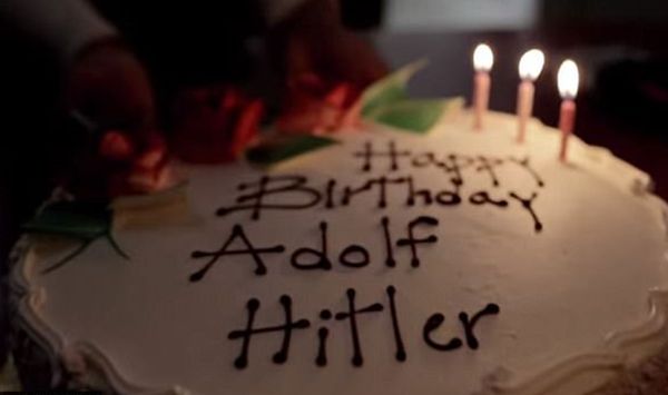 Pero el personaje no estoy seguro de si es un admirador de Adolf Hitler o un simple bufón que ridiculiza al personaje. No me parece especialmente serio.