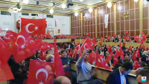 Cientos de expatriados turcos en Alemania, en un mitin celebrado en marzo de 2016 y en el que intervino el ministro turco de Deportes, Akif Cagatay Kilic. (Imagen tomada de un video de Deutsche Welle).