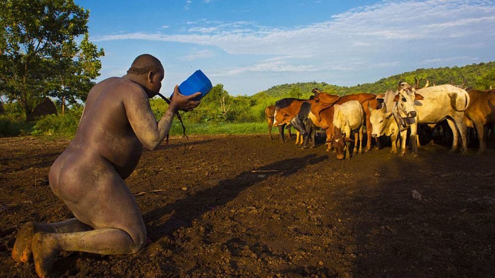“Las vacas son sagradas para la tribu Bodi por lo cual no son asesinadas. La sangre se extrae haciendo un agujero en una vena con una lanza o un hacha, y después de eso, la cierran con arcilla”, dijo.