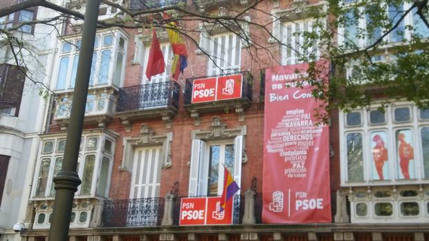 Justo cuando el Tribunal Superior de Justicia de Navarra emitía un auto por el que suspendía la decisión del Parlamento de Navarra de colocar la bandera republicana en la fachada de la cámara foral, los socialistas colgaban esta misma bandera de un balcón de su sede.