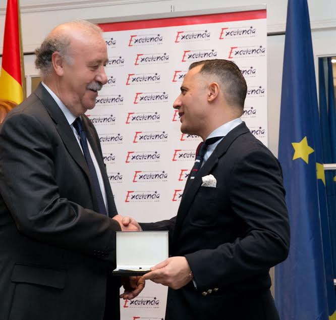 Ignacio de Jacob y Gómez entregando el título de Consejero de Honor a Vicente del Bosque, ex seleccionador nacional de fútbol.