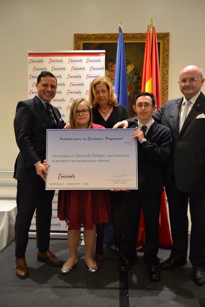 Ignacio de Jacob y Gómez entregando un cheque con un donativo a la Fundación Garrigou de ayuda a niños y jóvenes con síndrome de Down.