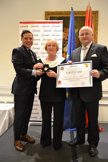 Ignacio de Jacob y Gómez entregando el Título de Consejera de Honor a Yvonne Blake, Presidenta de la Academia de las Artes y las Ciencias Cinematográficas de España.