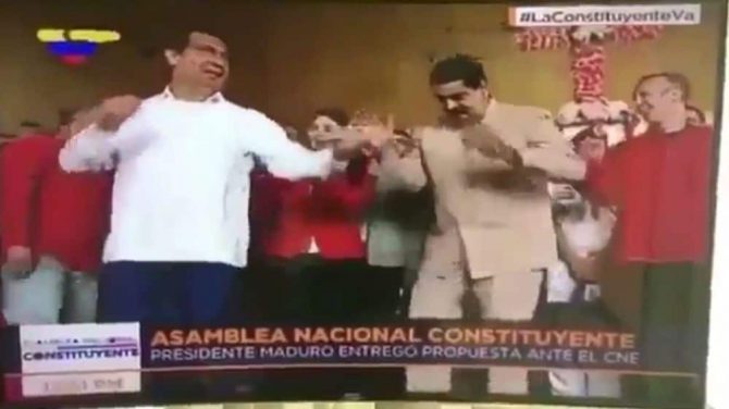 Lo que más indignó a los opositores fue que Maduro acompañado de su mujer, Cilia Flores, y sus ministros transmitió por la TV venezolana la activación de su constituyente en el Consejo Nacional Electoral, bailando salsa y riendo, mientras el canal estatal mostraba imágenes de la carga brutal de la GNB contra los manifestantes.
