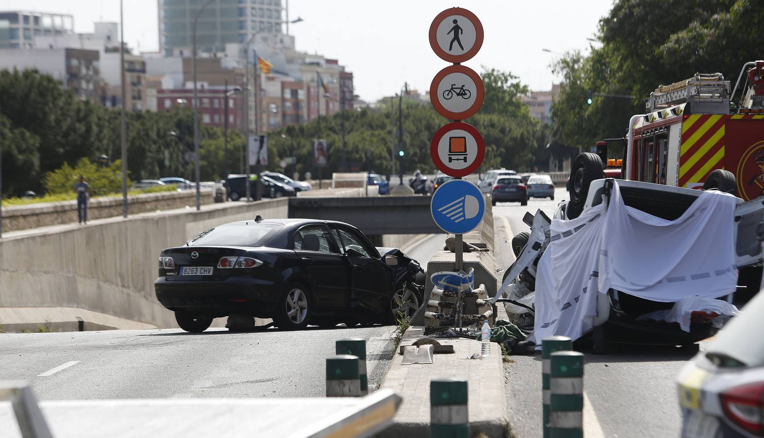 Una mujer de 34 años de edad, Paula M. O., murió ayer al mediodía en un accidente de tráfico causado por un conductor ebrio en la avenida de Tirso de Molina de la ciudad de Valencia. La víctima falleció al volcar la furgoneta Renault Kangoo en la que viajaba después de que este vehículo fuera embestido por un Mazda de color negro. La brutal colisión tuvo lugar en la vía marginal del viejo cauce del Turia cuando el coche se saltó un semáforo en rojo a gran velocidad, según las investigaciones de la Policía Local. La furgoneta circulaba en dirección a la avenida de Campanar y recibió el impacto en el lateral derecho a la altura del asiento del copiloto, el que ocupaba la mujer.