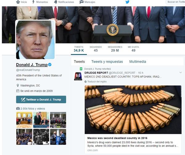 La mañana del miércoles, el presidente estadounidense, Donald Trump, que ha prometido construir un muro en la frontera con México, retuiteó en su cuenta personal un artículo periodístico sobre el reporte.