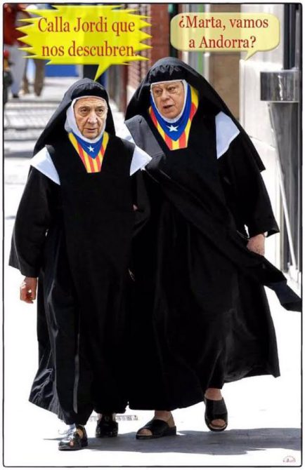 Aquí tenemos a los Sorprano desde que la mamma Marta Ferrusola por una voz interior que siente, ha renacido en “sor” María de la Santa Pela, instruyendo al prior del banco andorrano BPA (ahora BPA) para traspasar dos “”misales”” a la biblioteca del capellán, o sea, pasar dos kilos de pelas de su cuenta a otra de su hijo, Jordi Pujol Jr, como en la serie Dallas.