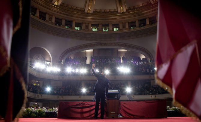 Cuando el anterior presidente de EEUU, Barack Obama, pronunció su primer discurso presidencial de importancia, en El Cairo en 2009, sus invitados de honor, sentados en primera fila, fueron líderes de la Hermandad Musulmana. Los regímenes militares del Medio Oriente, menos radicales que los islamistas, fueron dejados de lado y, así, debilitados. (Imagen: la Casa Blanca).