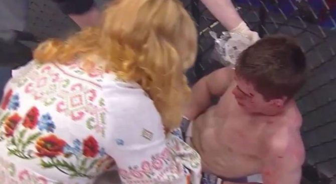 Una vez terminada la pelea, Anna Azovskaya se metió dentro de la jaula y mientras limpiaba la sangre del rostro de su hijo, lo abofeteó y lo obligó a levantarse. El joven de 22 años abandonó el escenario sin esperar la resolución del juez.