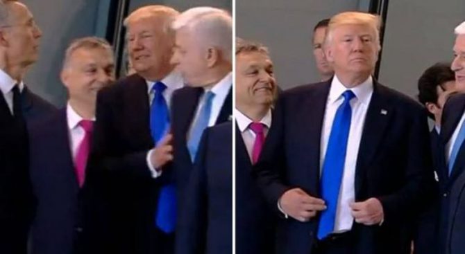 El presidente de Estados Unidos, Donald Trump, empujó al primer ministro de Montenegro, Dusko Markovic, para hacerse lugar al frente de un grupo de mandatarios en una reunión de la Organización del Tratado del Atlántico Norte (OTAN), este jueves en Bruselas.