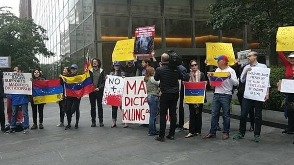 Venezolanos protestaron frente a la sede de Goldman Sachs en Nueva York por la compra de bonos al régimen de Maduro