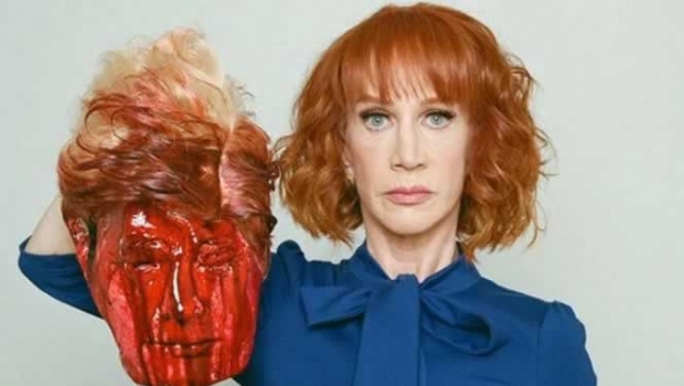 La actriz, cantante y presentadora estadounidense Kathy Griffin, durante una sesión fotográfica, mostró una imagen de una cabeza decapitada que se parecía mucho a la del presidente de Estados Unidos.