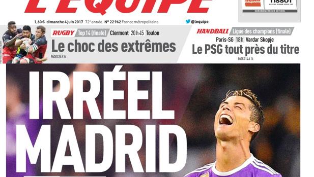 Para el diario, con su actuación de ayer, el portugués cuestiona su lugar en el olimpo de grandes jugadores de su historia, y llega a aventurar que es «posible» que su nombre «acabe un día escrito en la misma página que los de Pelé, Maradona o Cruyff». «Más allá de la evidencia de que el Real es el club más grande de la historia (…), esta final confirmó que este equipo tiene un entrenador. Se llama Zinedine Zidane», asevera. También recuerda el periódico que Karim Benzema y Raphaël Varane se unen a Raymond Kopa como los únicos franceses con tres Copas de Europa en sus bolsillos.