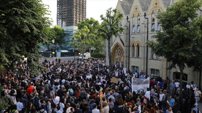 Por si nos faltaba alguna prueba de la rendición del pueblo británico ante el islamismo asesino y sus cómplices políticos y mediáticos, la respuesta concluyente de los cientos de personas que se han movilizado en las calles contra lo que consideran “falta de respuestas” tras el incendio del 14 de junio en la torre Grenfell, en el que murieron al menos 30 personas.