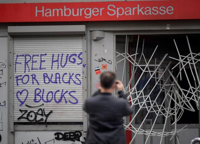 Varios comercios han sido saqueados, según la televisión regional NDR, mientras se suceden las cargas policiales contra grupos de jóvenes enmascarados identificables como violentos.