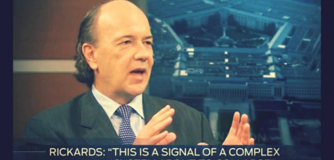 “La cuestión no es si se producirá un colapso del sistema monetario mundial, sino cuándo” afirma el ex-asesor del Gobierno de los Estados Unidos y ex-analista de la CIA Jim Rickards. Aunque el colapso del sistema monetario mundial provocará una nueva crisis de escala mundial, Jim Rickards le resta importancia. “Cada 40 años aproximadamente se produce una caída del sistema monetario mundial, y la última vez que esto ocurrió fue en 1971, por lo que ya llevamos 5 años de retraso”. Pero para Jim Rickards esto no es necesariamente una mala noticia. “Como en todas las crisis habrá ganadores y perdedores” afirma Rickards. “Lo que de verdad importa no es qué ocurra o por qué ocurra, si no posicionarse en el lado de los que ganan dinero como ocurre en todas y cada una de las crisis económicas de la historia de la humanidad”.