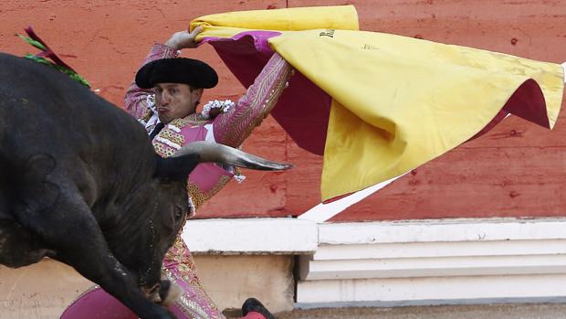Recibe Rafaelillo de rodillas al tercero, abierto de cara, que pronto flojea. Acude templado, algunas veces, por la izquierda. Con mucho oficio, Rafaelillo le va sacando muletazos, de uno en uno, deslucidos por las caídas del toro. A pesar de la altura de la res, logra una buena estocada y, por eso, más que por la faena, le dan la oreja. Al cuarto, «Nevadito», de 660 kilos, el de más peso de la Feria, alto y largo como un tren, también lo recibe de rodillas, con verónicas, y el toro corresponde rompiéndole el chaleco. Le pegan fuerte pero vuelve rápido. Rafaelillo se pelea con él, con mucho mérito y valor, en un trasteo de verdad épico; sufre una tremenda voltereta. Sin chaquetilla, con un solo tirante, todavía se desplanta y, a la segunda, mete muy bien la mano, con la espada: justa oreja y salida a hombros.