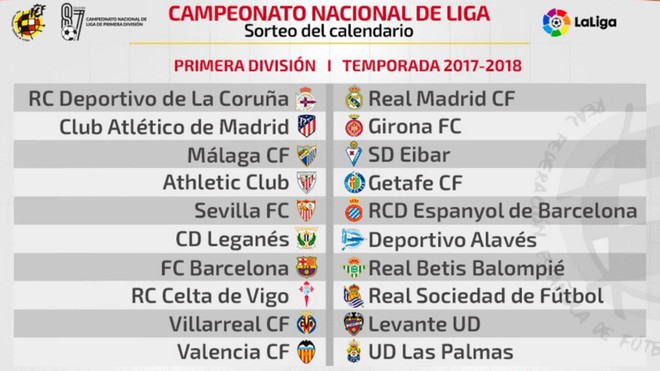El sorteo del calendario de LaLiga, celebrado un día después de lo previsto tras la Operación Soule y la detención de Ángel María Villar, presidente de la RFEF, deparó la primera jornada del campeonato. El Real Madrid, actual campeón, comenzará la defensa del título fuera de casa ante el Depor en Riazor, mientras que el Barça iniciará LaLiga en el Camp Nou contra el Betis.