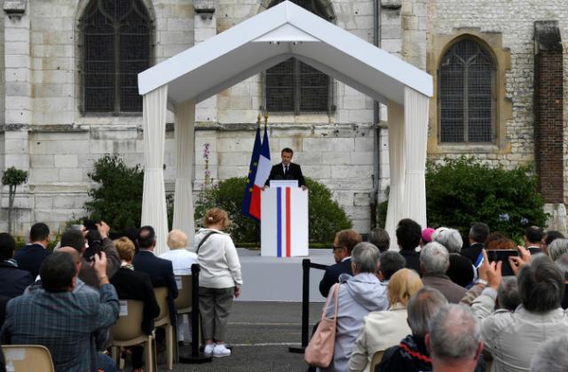 “El rostro de Jacques Hamel se ha convertido en el rostro del rechazo a la cultura de la muerte y al terrorismo arrogante”, declaró Macron en un discurso pronunciado frente a la pequeña iglesia de Saint-Etienne-du-Rouvray donde fue asesinado en plena misa este cura octogenario.