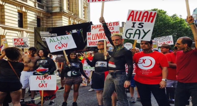Durante el desfile del Orgullo Gay en Londres, miembros del Consejo Británico de Ex Musulmanes (CEMB) fueron obligados por la Policía a retirar algunas pancartas que contenían el mensaje: “Allah es Gay”, mientras que las que sostenían el mismo mensaje vinculado a Jesús no atrajeron la atención de las autoridades.