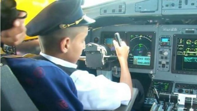 Acompañado siempre de una cámara de la cadena de televisión local Al Bilad TV, que preparaba un reportaje sobre esta jornada, el pequeño se convirtió en el tercer piloto del vuelo 6212 que despegó con normalidad y con el invitado sentado en el asiento de observador, una butaca situada en el centro de la cabina exactamente entre ambos pilotos, una posición usada generalmente por instructores o inspectores.
