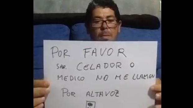 El hombre explica mediante carteles que desde las 11 de la mañana que llegó al hospital por una inflamación del pie —tras haber sido operado por diabetes— y de que informó al personal de que era sordo, hasta las 17.30 horas que se fue de alli, nadie le avisó de que era su turno.
